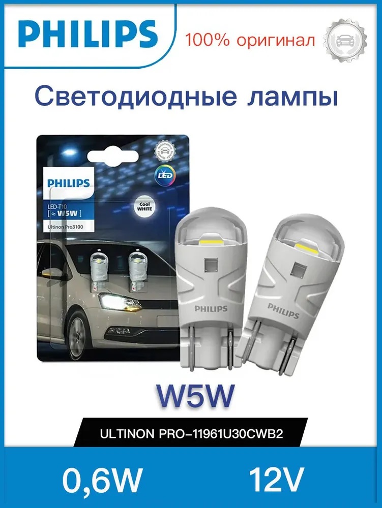 Автолампы светодиодные PHILIPS W5W 6500K T10 LED (2 шт.)