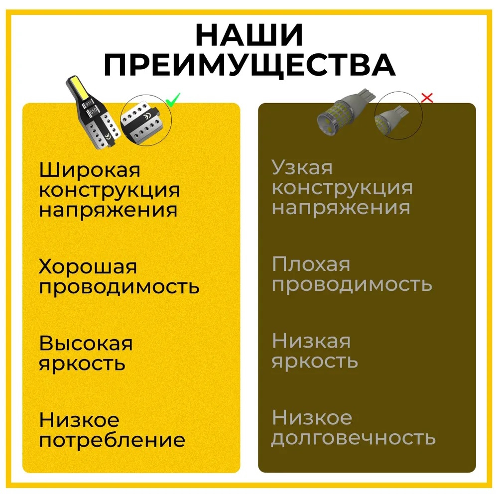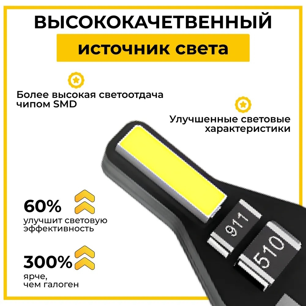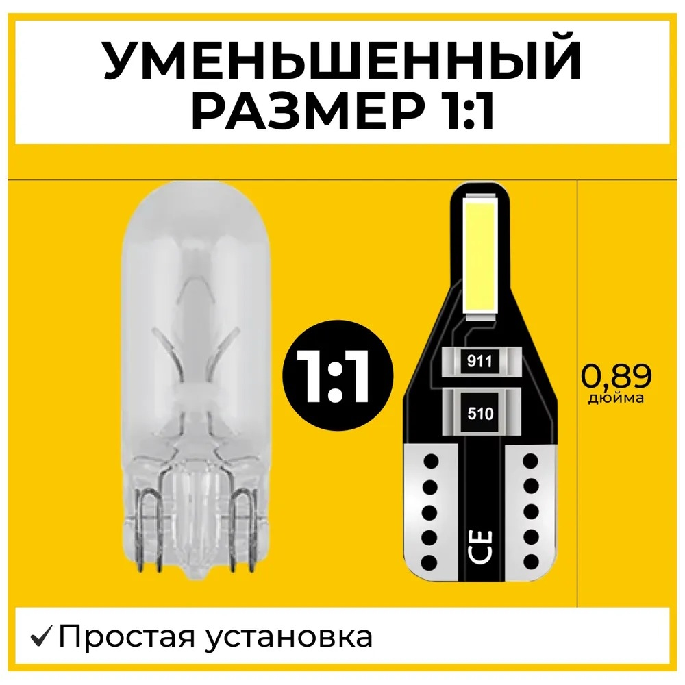 - простая установка с клиновидным цоколем T10 W5W, который подходит для большинства автомобилей.
