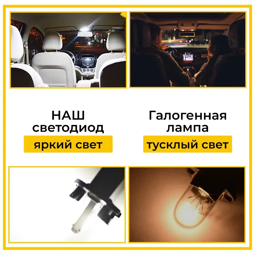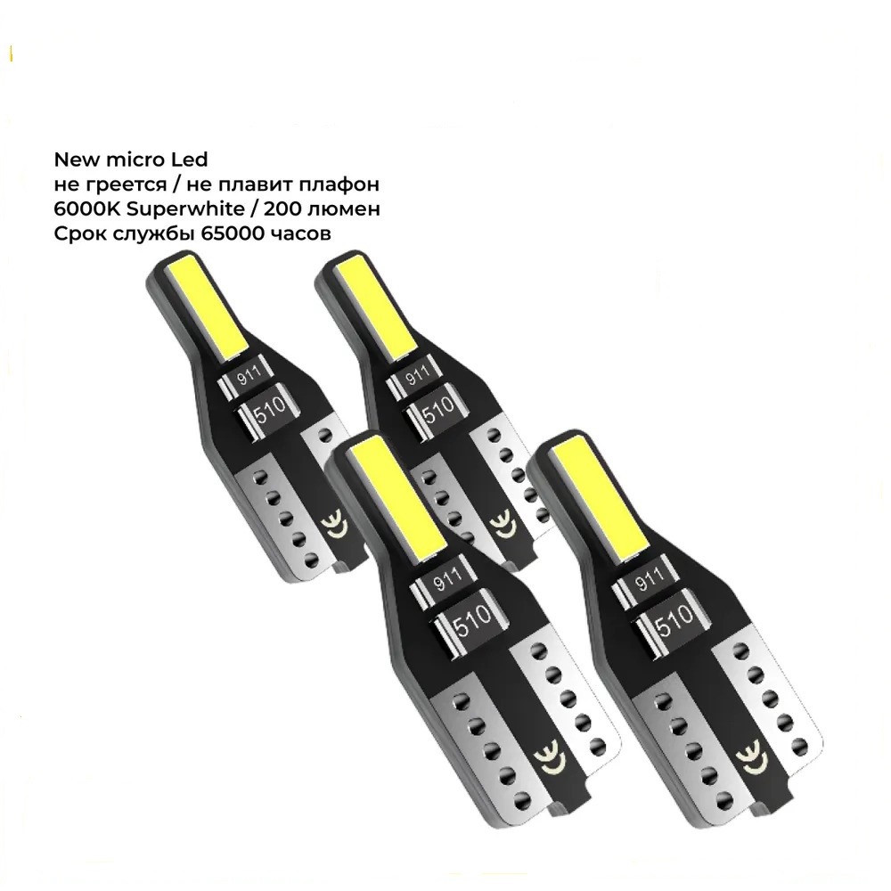 Для того чтобы сделать свой автомобиль более ярким и стильным, Вам понравятся светодиодные лампы T10 W5W. Эти лампы подходят для установки в разных частях автомобиля, таких как подсветка салона, дверей, багажника, номерного знака и т.д.
