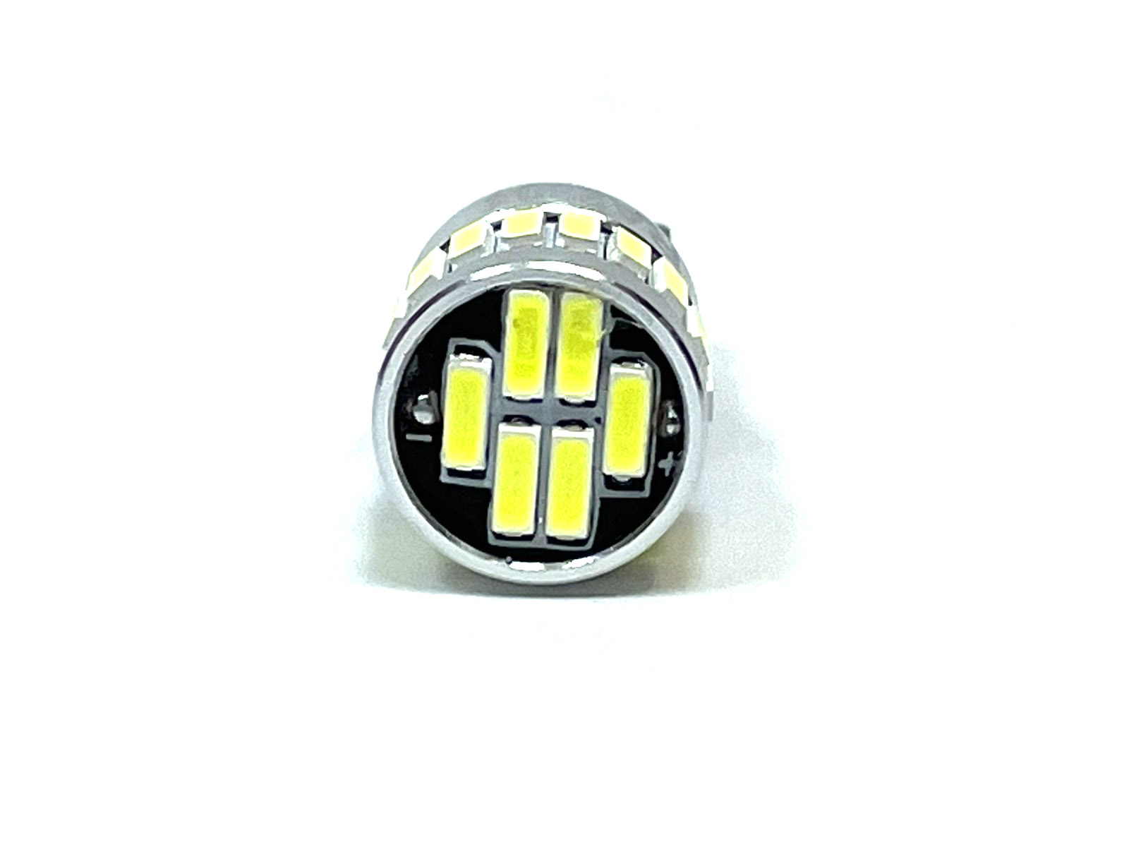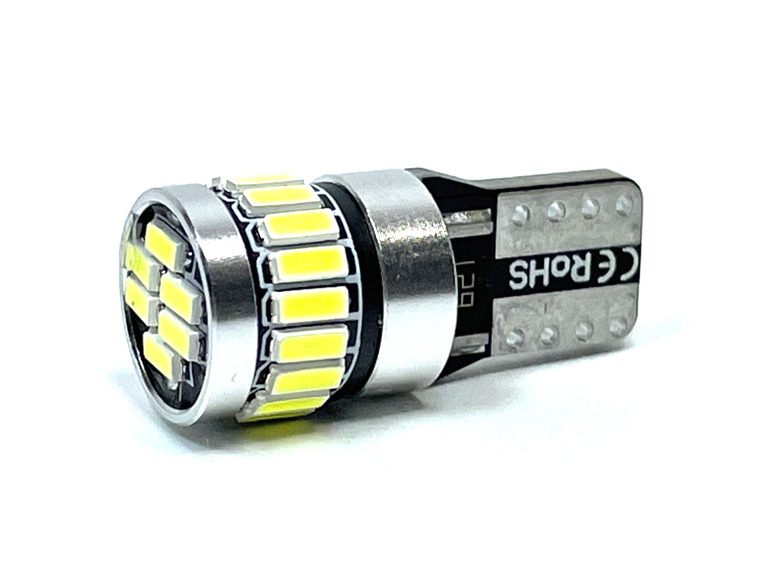 Данная лампа имеет стандартный цоколь T10, он же W5W и имеет незначительные габариты, что позволяет ей встать почти в любую фару. Так же лампа оснащена обманкой. 24 ярких светодиодов светят намного ярче ламп накала, а полностью металлический корпус позволяет интенсивнее отводить тепло, что значительно продлевает срок ее службы.