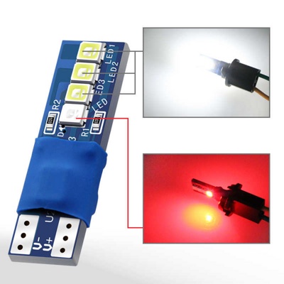Светодиод T10-3030- red+white По 1 красной SMD матрице 3030 с двух сторон зажигаются на 3 секунды и гаснут и 3 SMD матрицы 3030 с двух сторон горят ярко после того, как потухнет красный.