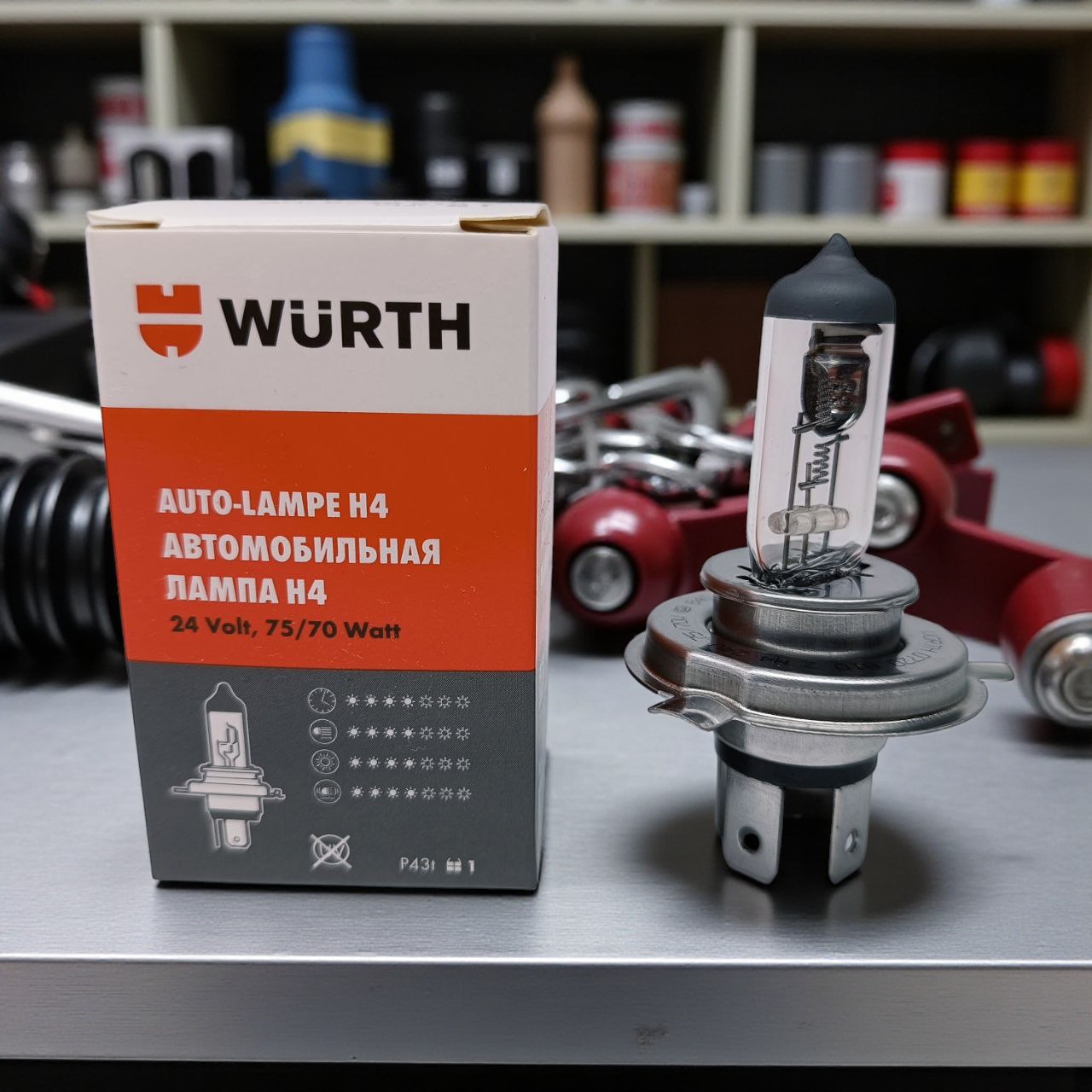 Автолампа галогеновая: тип H4 24V 75/70W, P43T, Box WÜRTH 07208102