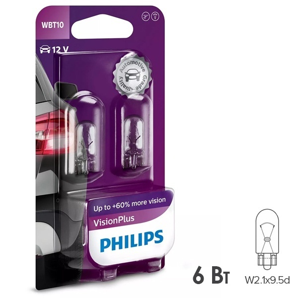 Ярче на 60%! Комплект ламп PHILIPS Vision Plus W5W (2 шт.)
