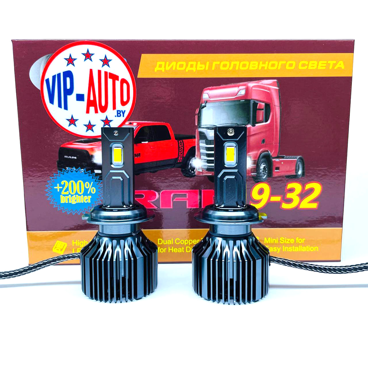 Серия сверхярких светодиодов H7 RAM TRUCK 4500K - Диоды этой серия снабжены стабилизатором напряжения самого широкого диапазона: 9-48 Вольт. В диодах серии Truck мощность стабилизирована на 45 ватт, что позволяет системе охлаждения поддерживать температуру радиатора до 60 градусов Цельсия. При этом световой поток после прогрева не опускается ниже 4500 Люмен (каждая лампа). Диагональные световые пропилы, утопленный чип и точное фокусное расстояние делают модель идеальной для рефлекторной оптики легковых и грузовых авто. Цветовая температура 4500K.
