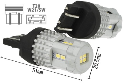 Светодиодная лампа W21/5W в ДХО T20 7443 PRO CANBUS BIPOLAR 12-24V
