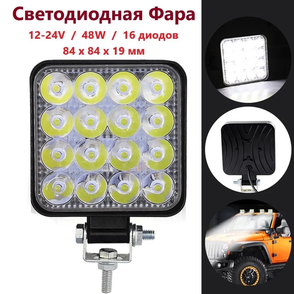 Светодный прожектор 12-24В 16 диодов 84х84х19 мм