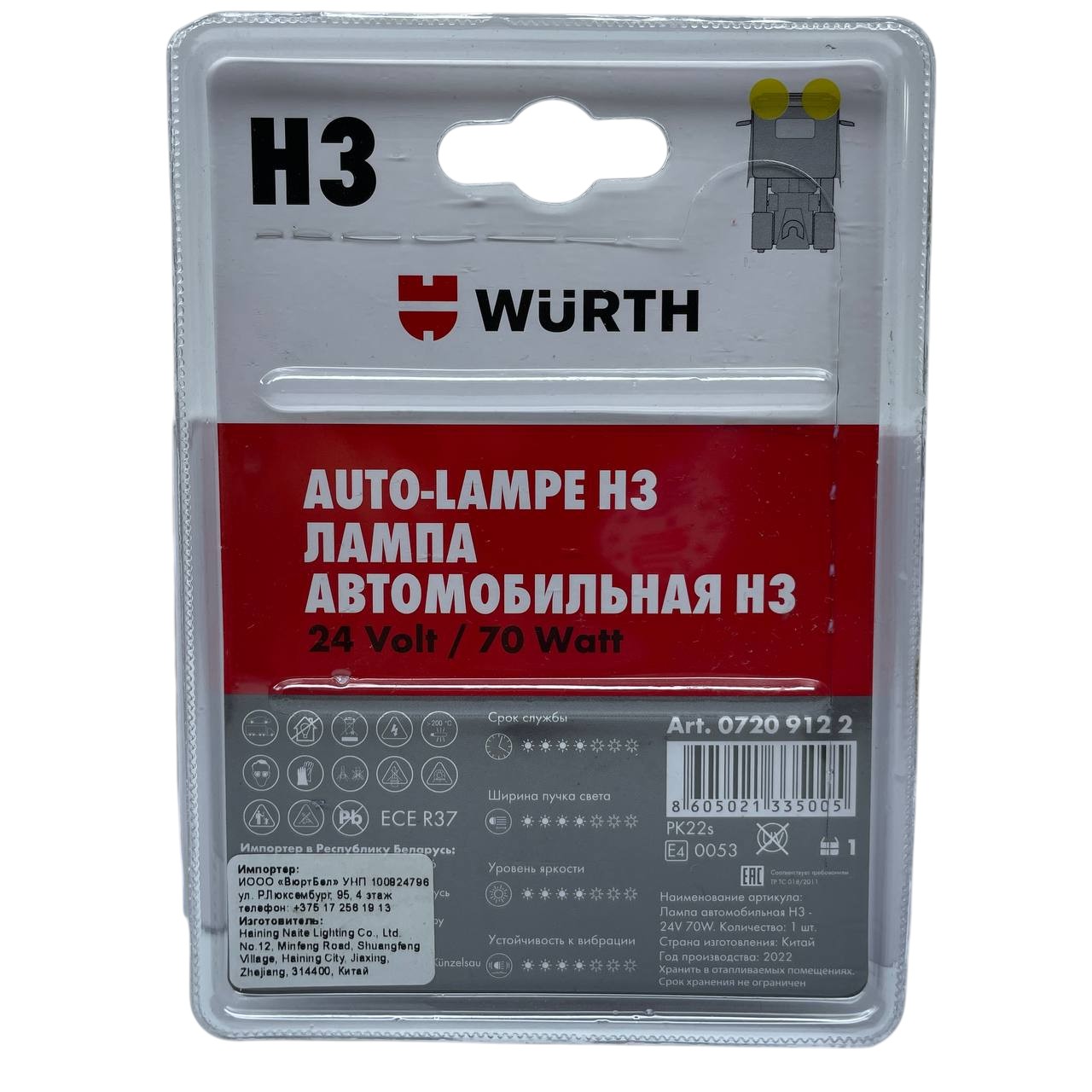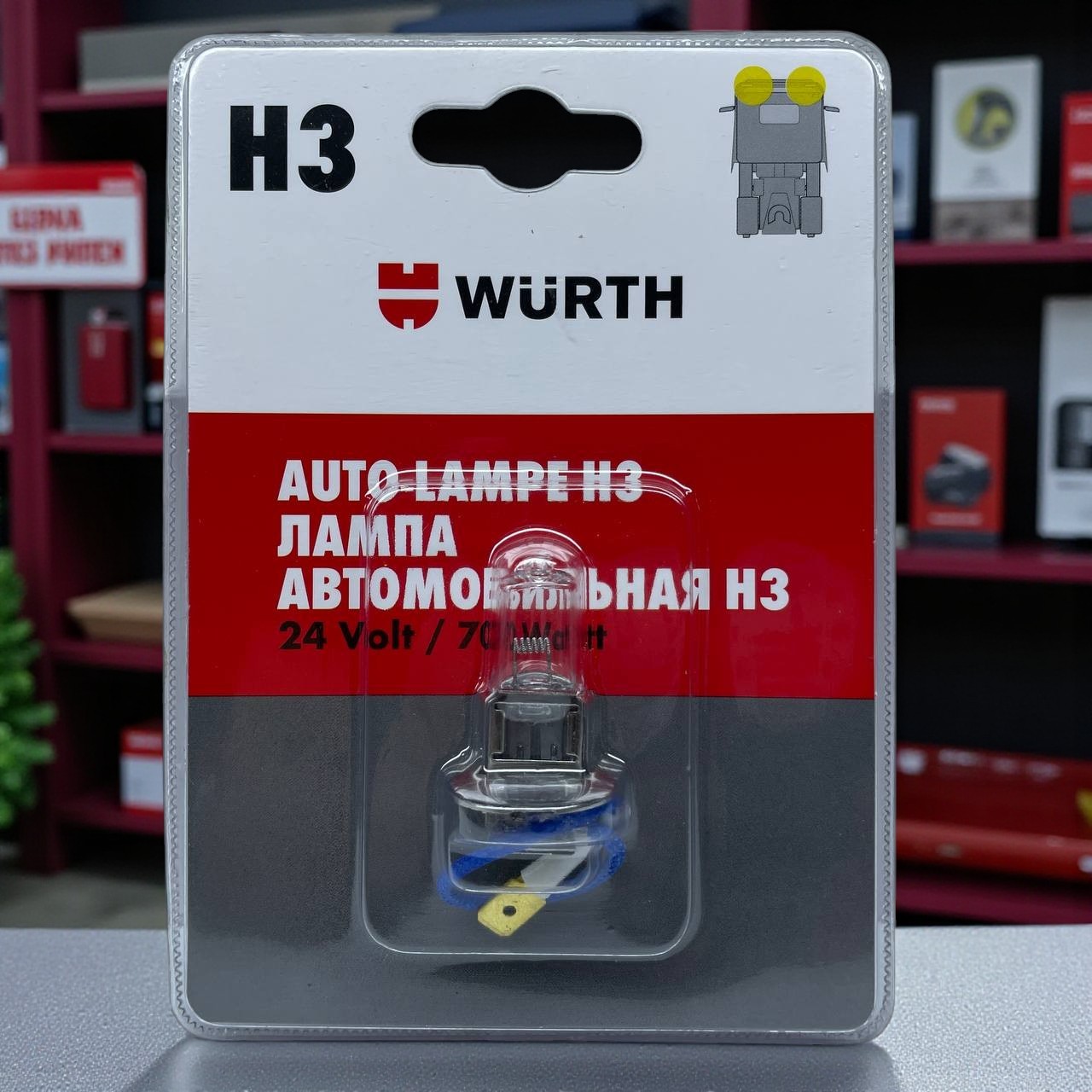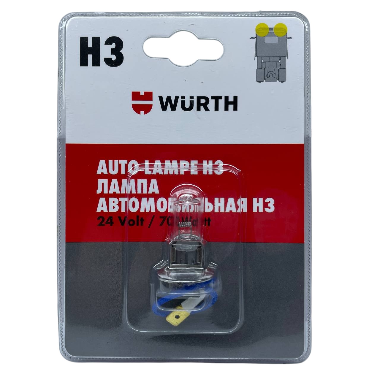 Автолампа галогеновая H3 24V 70W в блистере WURTH