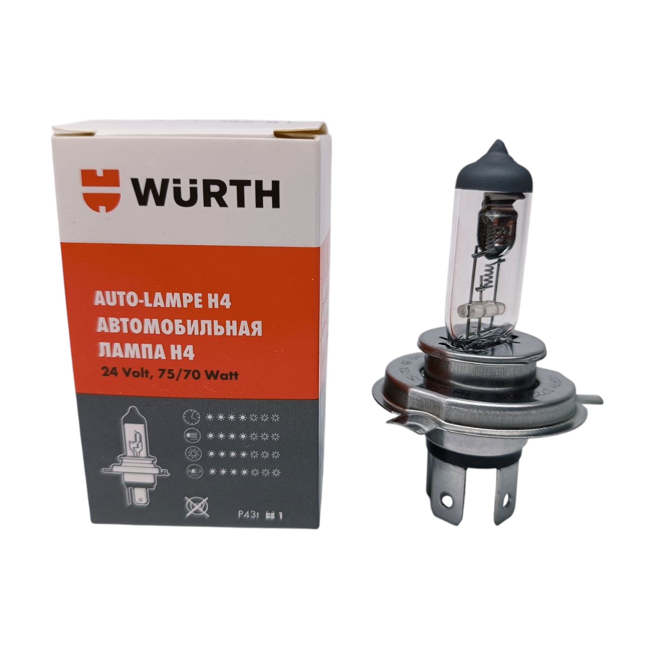 Автолампа галогеновая: тип H4 24V 75/70W, P43T, Box WÜRTH 07208102