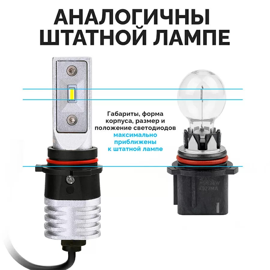 Светодиодные автолампы для авто V12 P13W - серия компактных, ярких, универсальных ламп головного света. До 230% яркости по сравнению со штатными лампами.